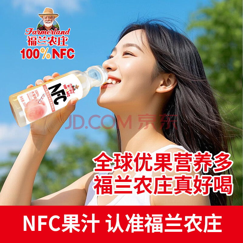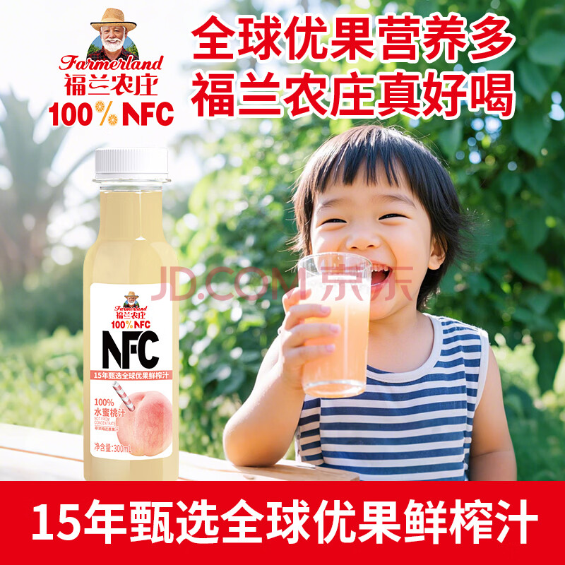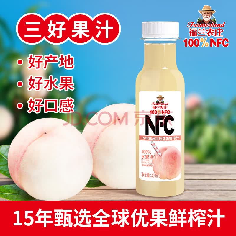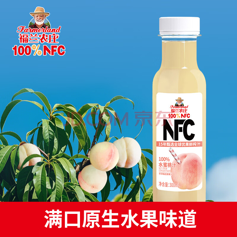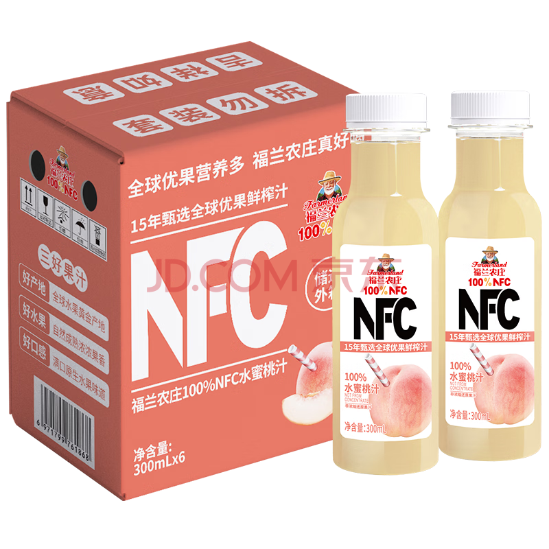 商品名称:福兰农庄NFC水蜜桃汁100%鲜榨果汁饮料300ml*6瓶整箱装聚会必囤