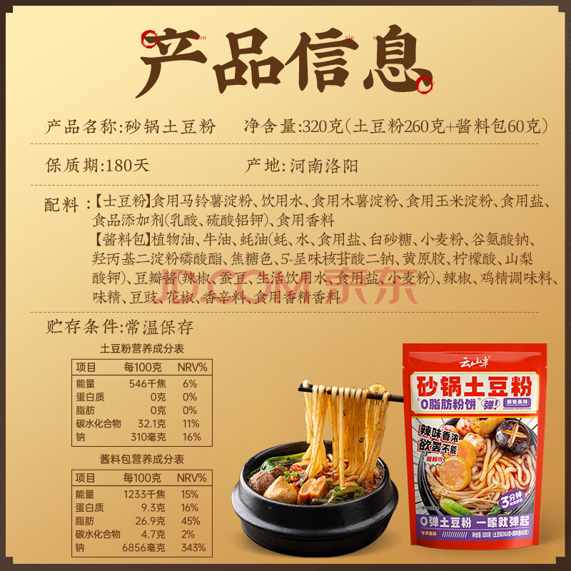 商品名称:云山半砂锅土豆粉320g方便速食品火锅川粉酸辣粉螺蛳粉过桥米线火锅食材