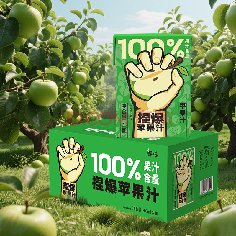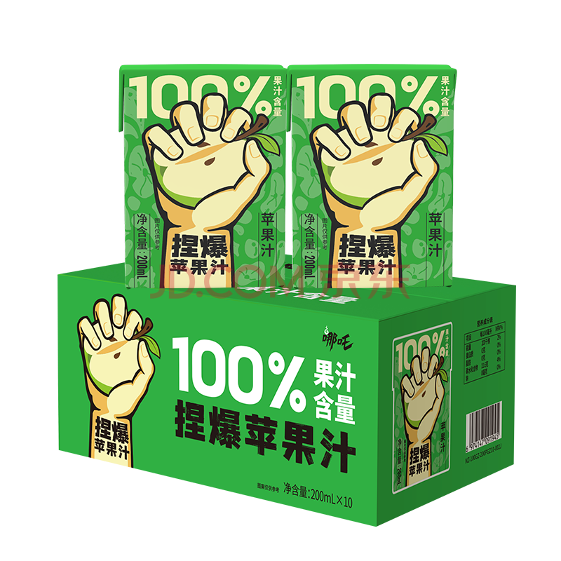 商品名称:哪吒捏爆100%苹果汁200ml*10盒0添加蔗糖早餐下午茶儿童维C饮料年货