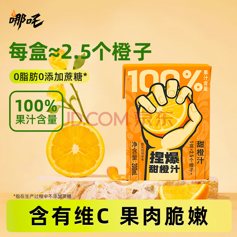 哪吒100%橙汁200ml*12盒0添加纯鲜榨果汁年货送礼盒维生素c火锅饮料品