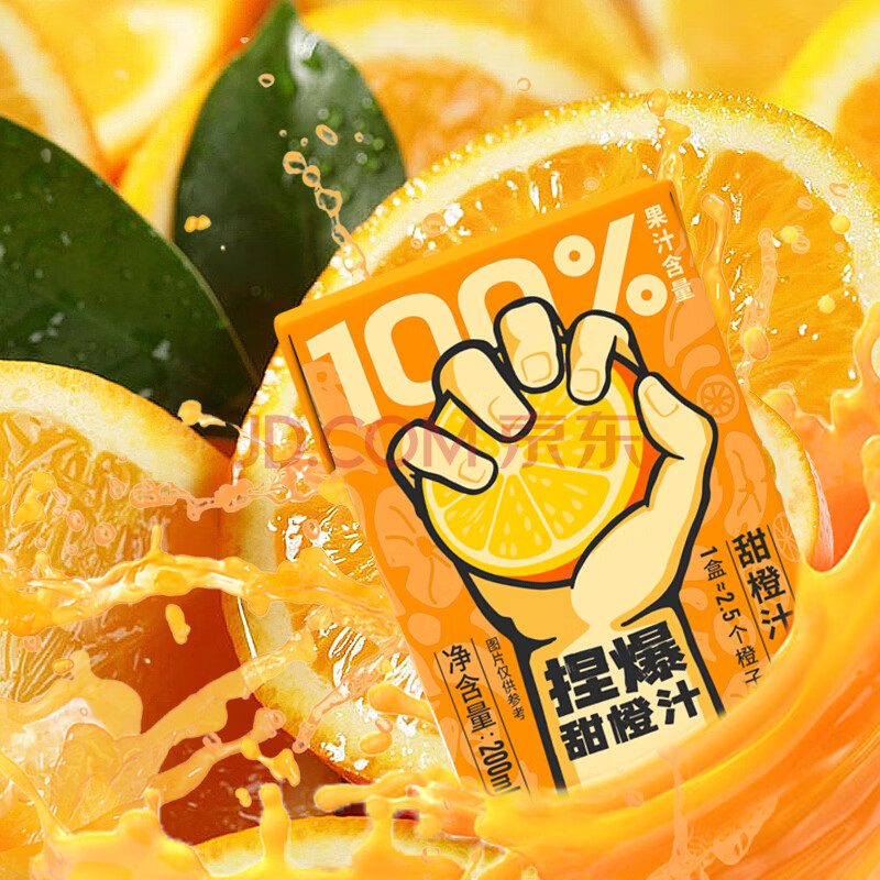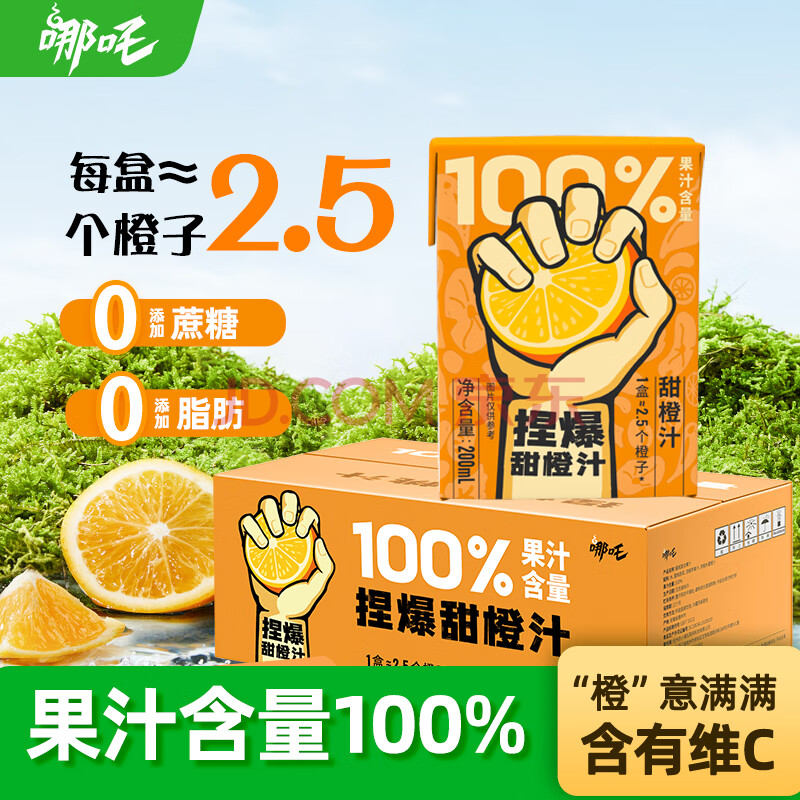 商品名称:哪吒100%橙汁200ml*12盒0添加纯鲜榨果汁年货送礼盒维生素c火锅饮料品