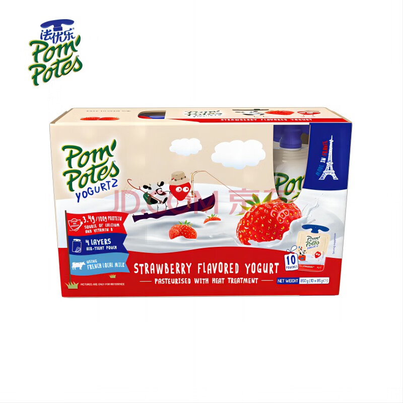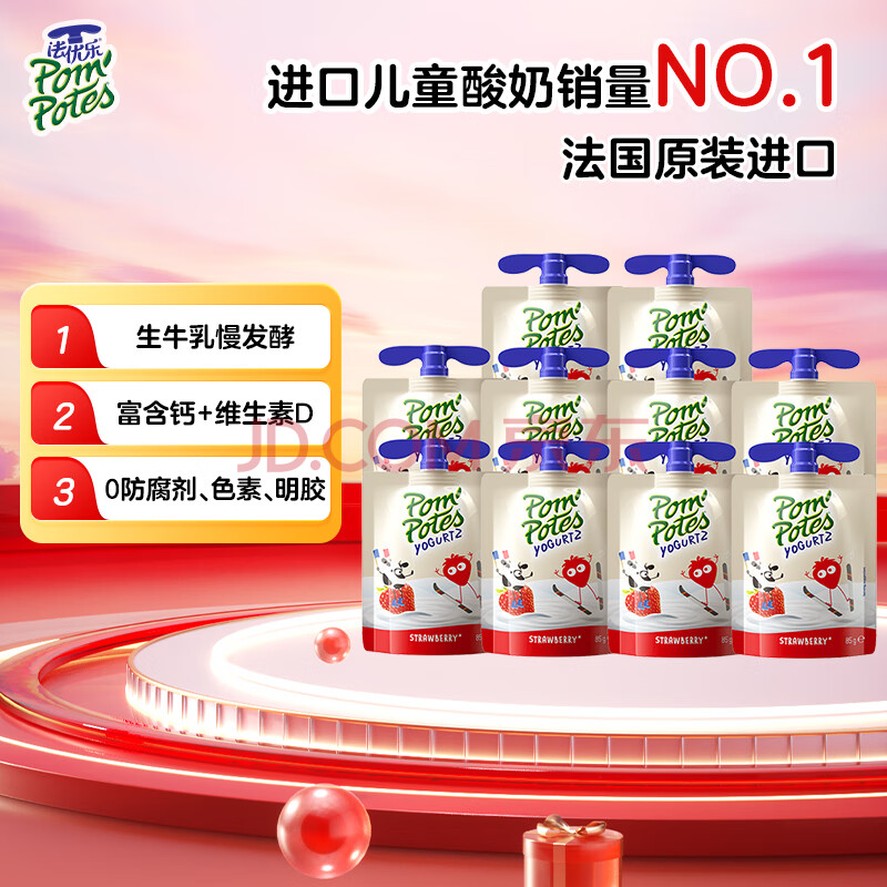 > 法优乐(POM'POTES)法国原装进口儿童零食常温酸奶草莓味85g*10袋