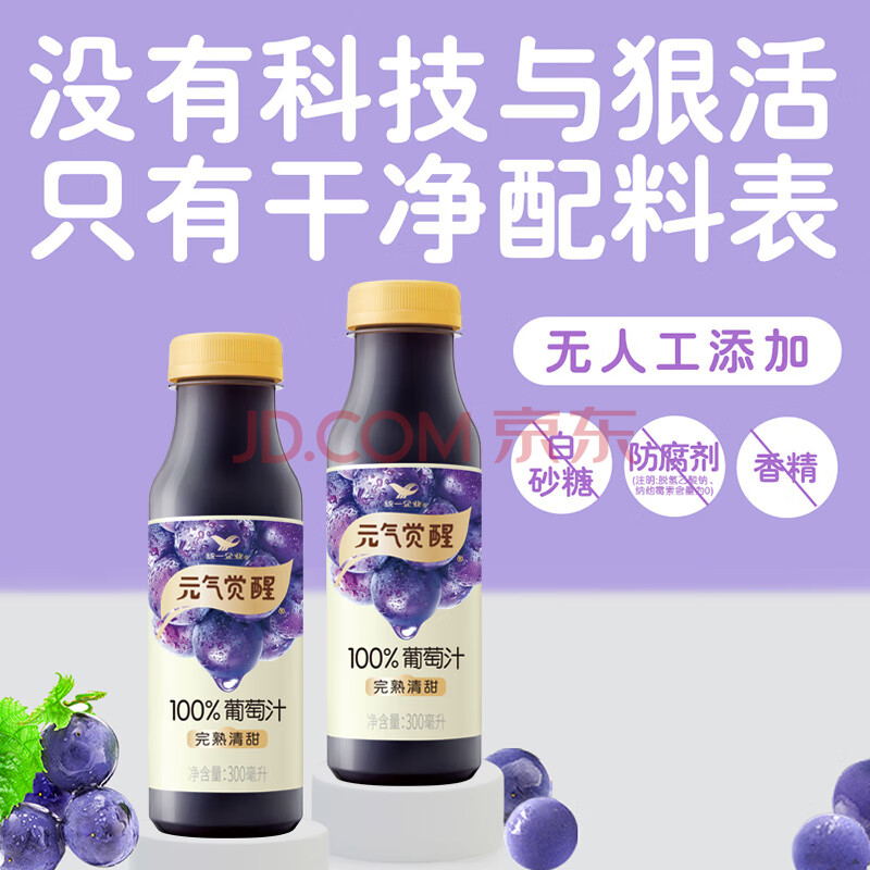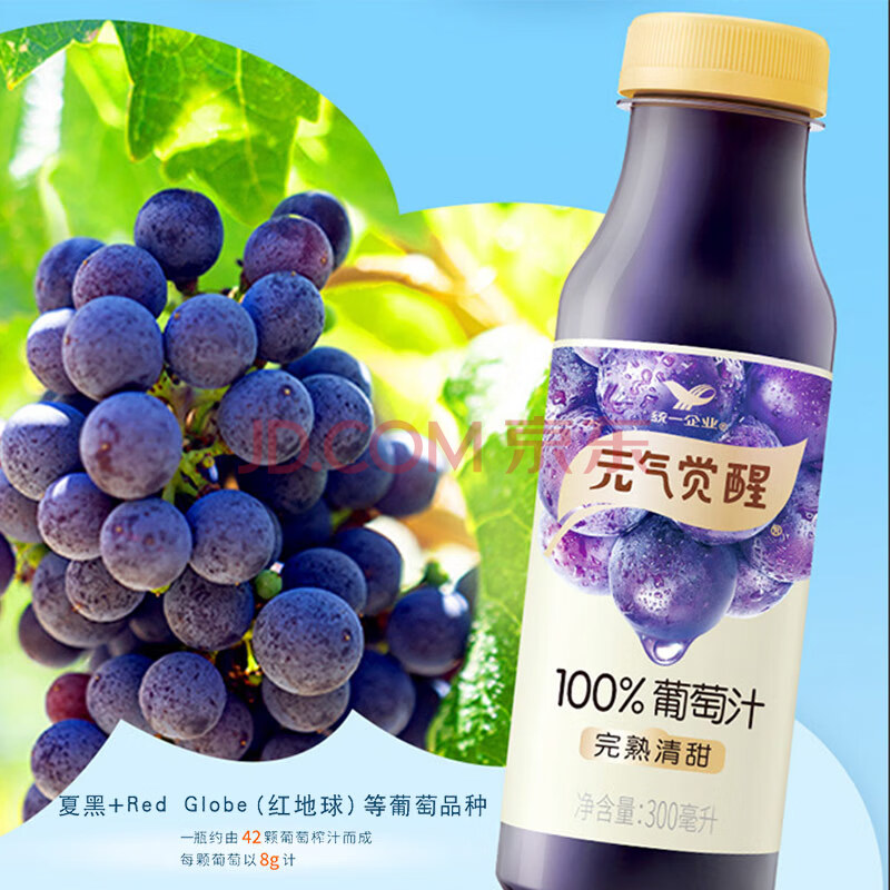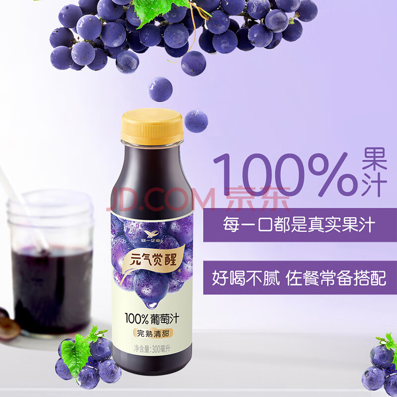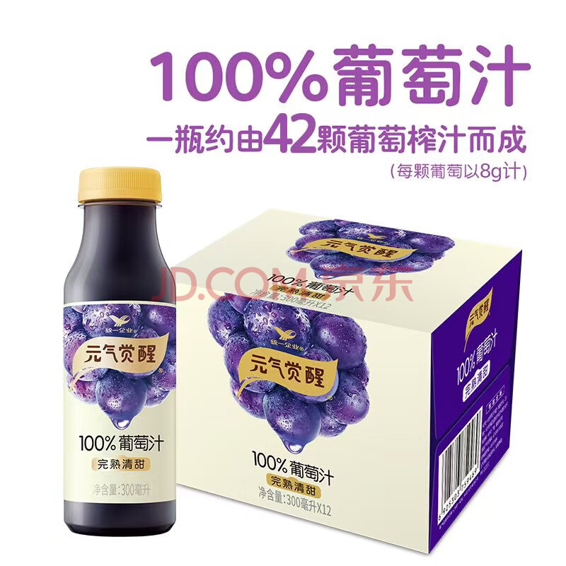商品名称:统一 元气觉醒 100%葡萄汁300ml 12瓶整箱新旧款随机发货