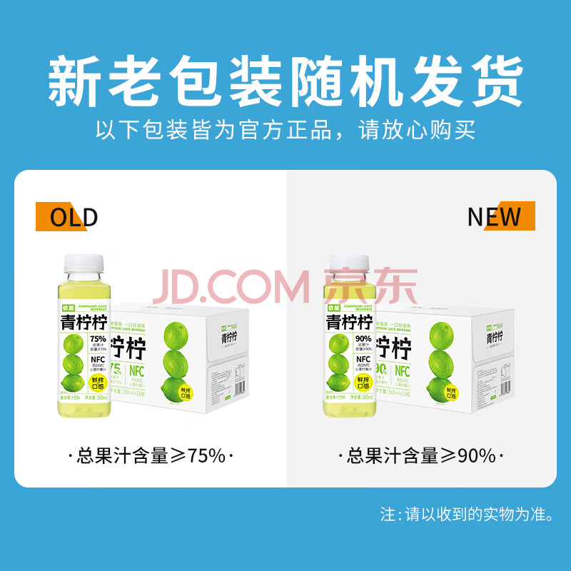 商品名称:依能 NFC青柠果汁饮料 0脂0防腐剂 果汁饮料360ml*15瓶婚礼送礼盒整箱