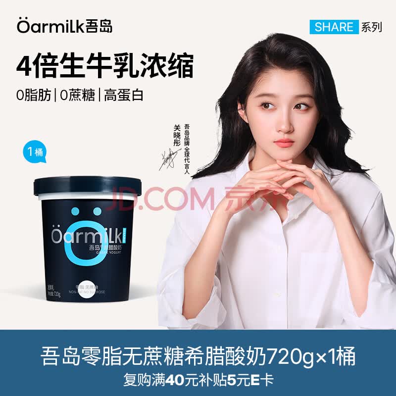 > OarmiLk吾岛【关晓彤推荐】0脂0蔗糖低GI希腊高蛋白低温酸奶酸奶碗720g