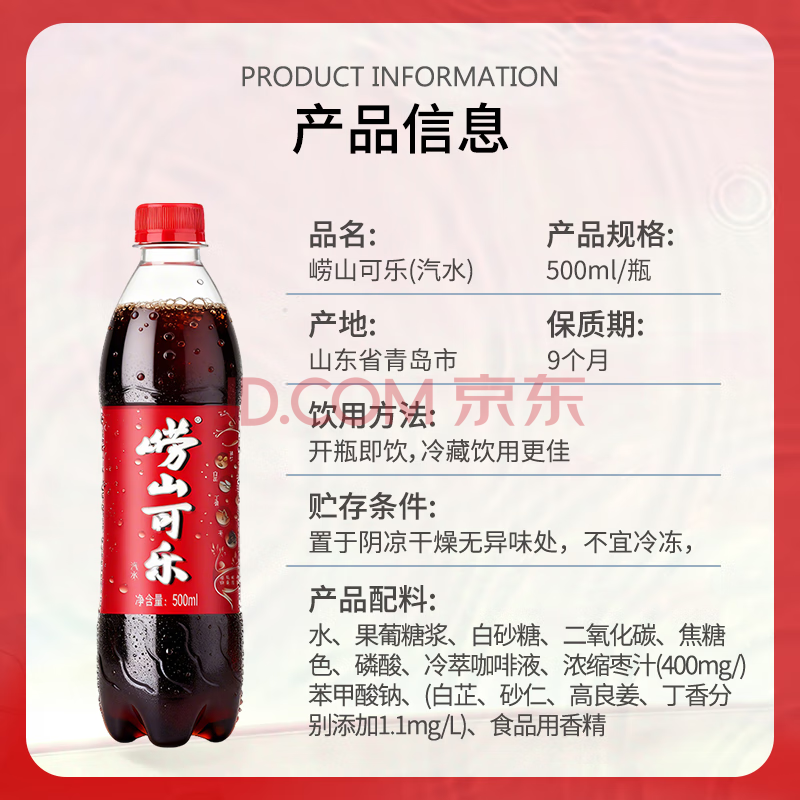 商品名称:崂山【任嘉伦推荐款】中华老字号 国货可乐汽水 碳酸饮料 500ml*24瓶