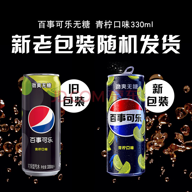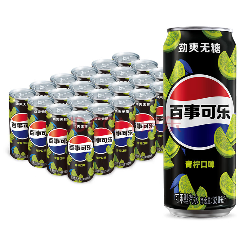 商品名称:百事可乐Pepsi 无糖可乐 青柠味碳酸饮料汽水 330ml*24听 细长罐整箱装