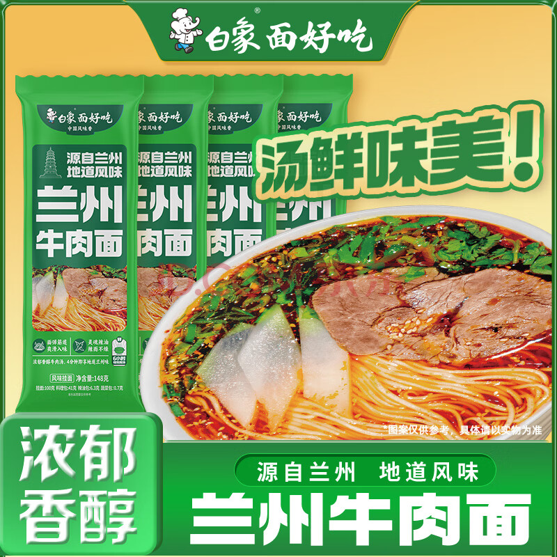 > 白象 兰州牛肉面【非油炸方便速食】地道风味拉面早餐挂面条148g*4包