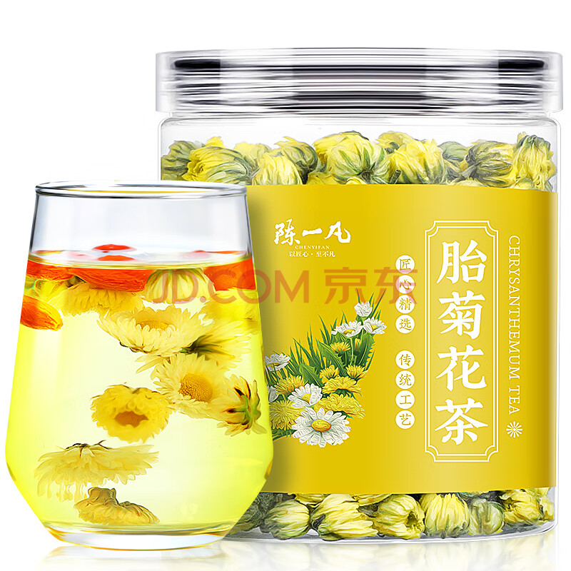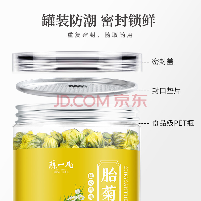 商品名称:陈一凡 胎菊花茶 头茬新鲜桐乡原产无硫无添加泡水喝花草茶罐装60g