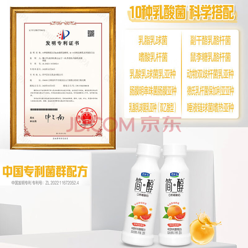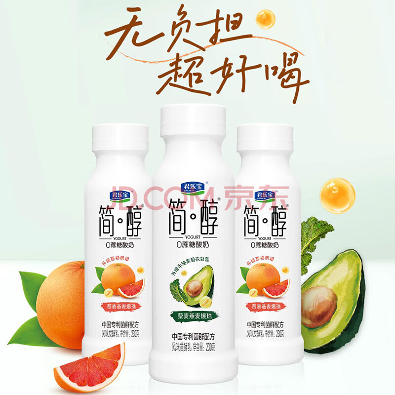 商品名称:君乐宝简醇 0蔗糖西柚脐橙爆珠230g*4瓶 低温酸奶 健康轻食