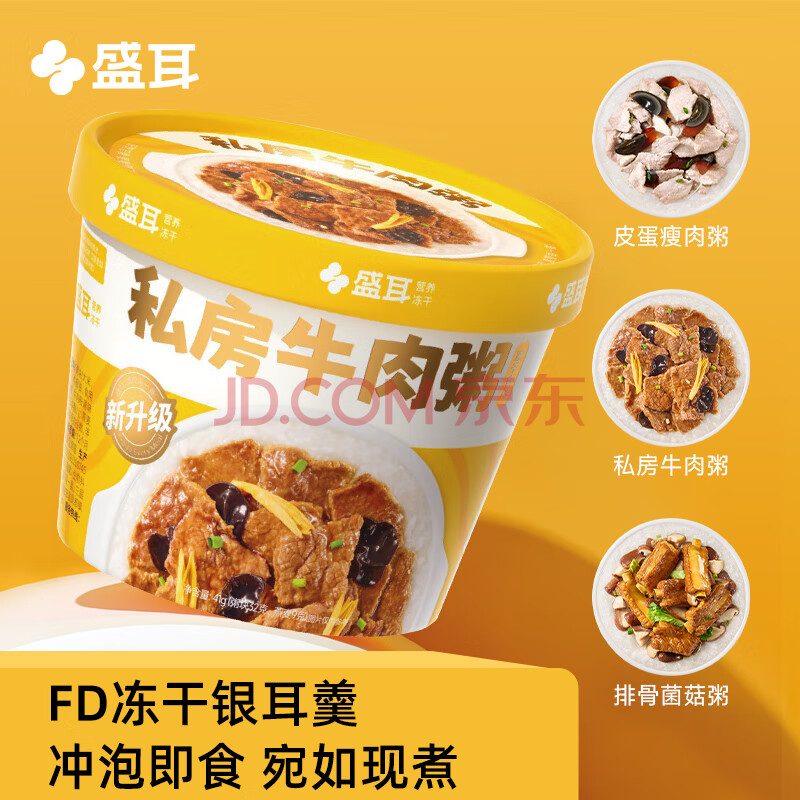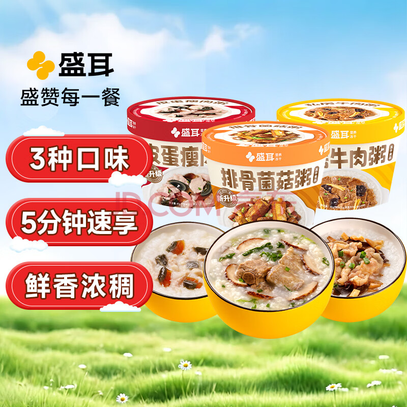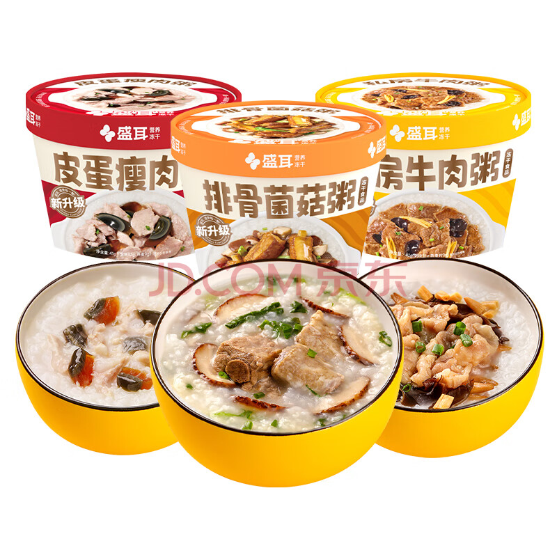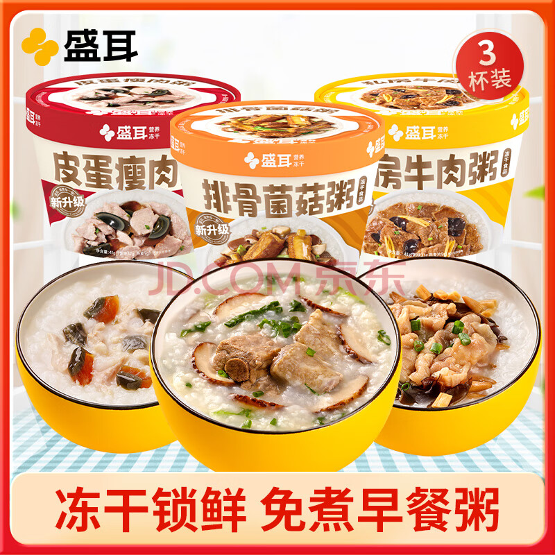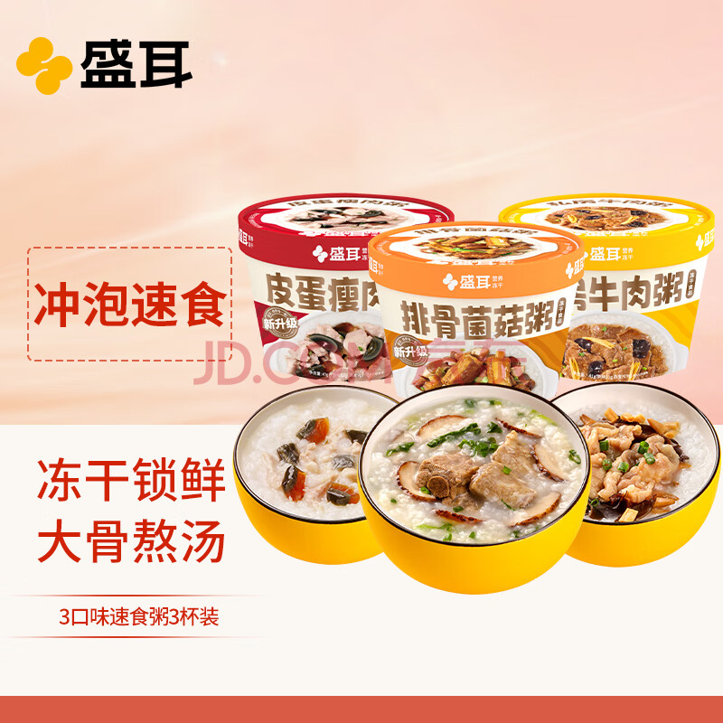 商品名称:盛耳方便速食粥 排骨牛肉皮蛋瘦肉粥 早餐冲泡即食3口味混合 38g*3杯
