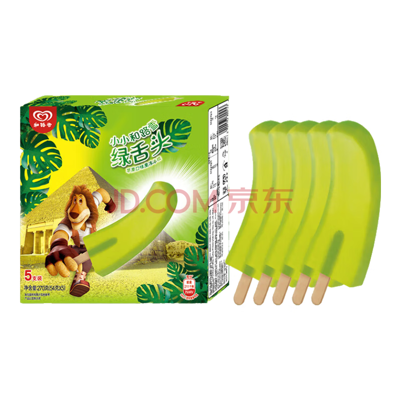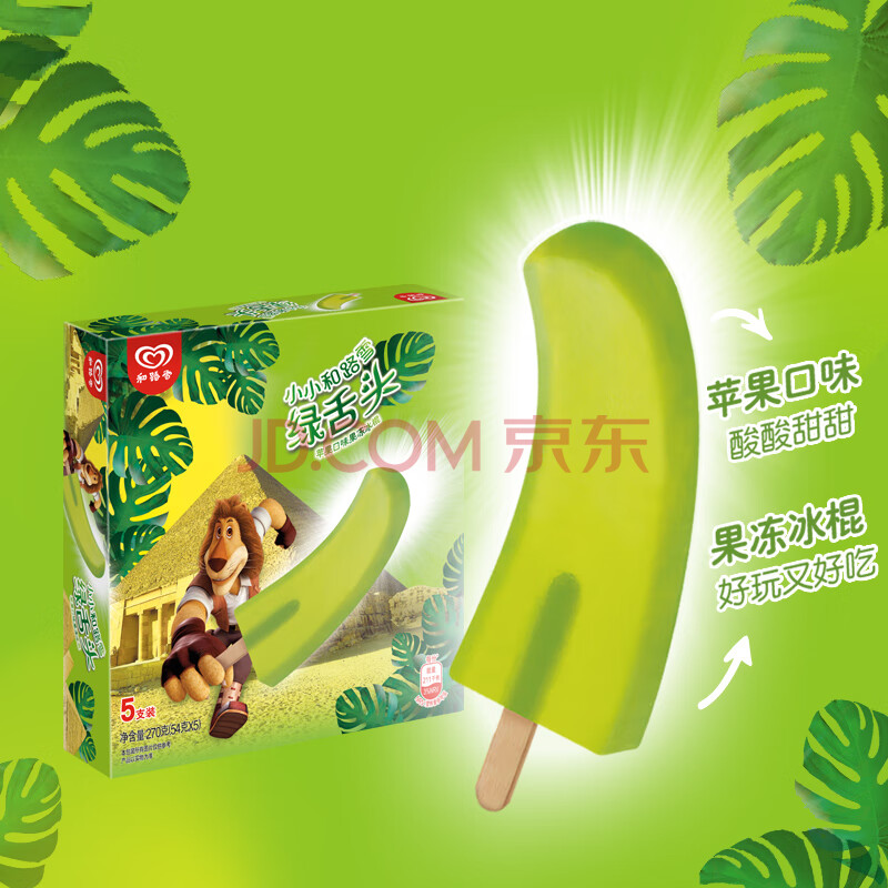 商品名称:和路雪小小和路雪绿舌头苹果口味果冻冰棍冰淇淋 54g*5支 雪糕 冰激凌