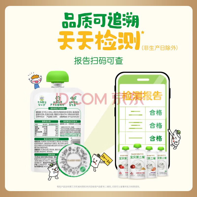 商品名称:卡士(CLASSY.KISS)宝贝第二餐儿童酸奶85g*6袋 西梅苹果味 无蔗糖酸奶 儿童礼物