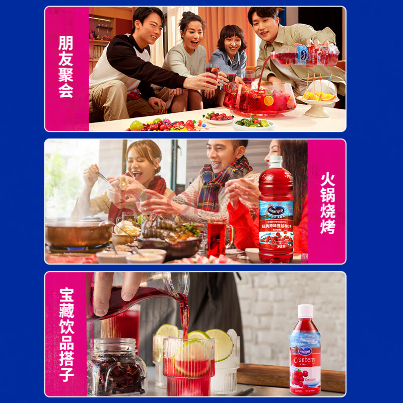 > 优鲜沛(Ocean Spray)蔓越莓汁果汁 调酒配方饮料饮品 原味1L