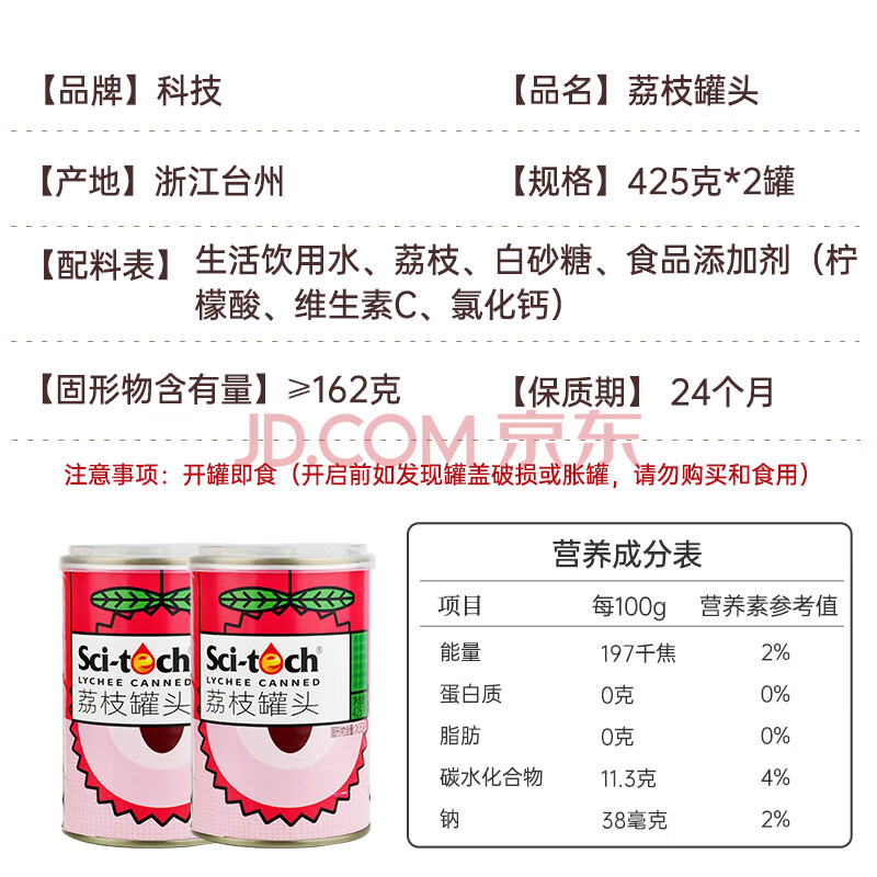 商品名称:科技 荔枝罐头425g*2罐 水果罐头即食休闲零食水果捞糖水饮料甜点礼物