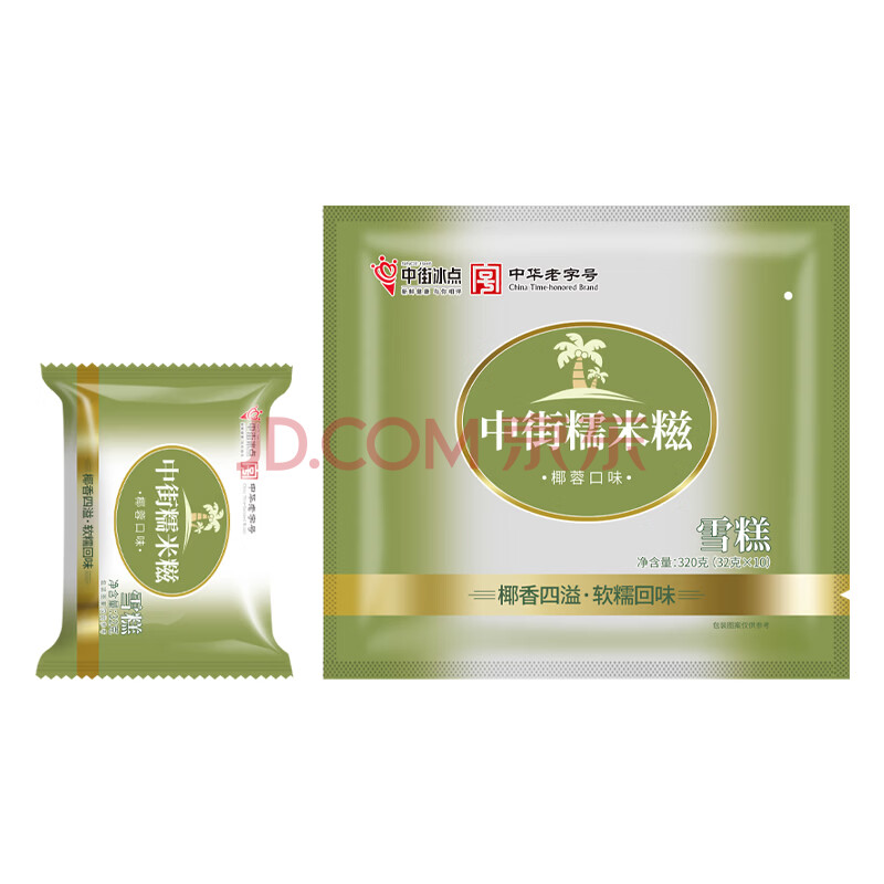 商品名称:中街冰点 椰蓉糯米糍 椰蓉味雪糕32g*10粒 家庭装 冰淇淋甜品 下午茶