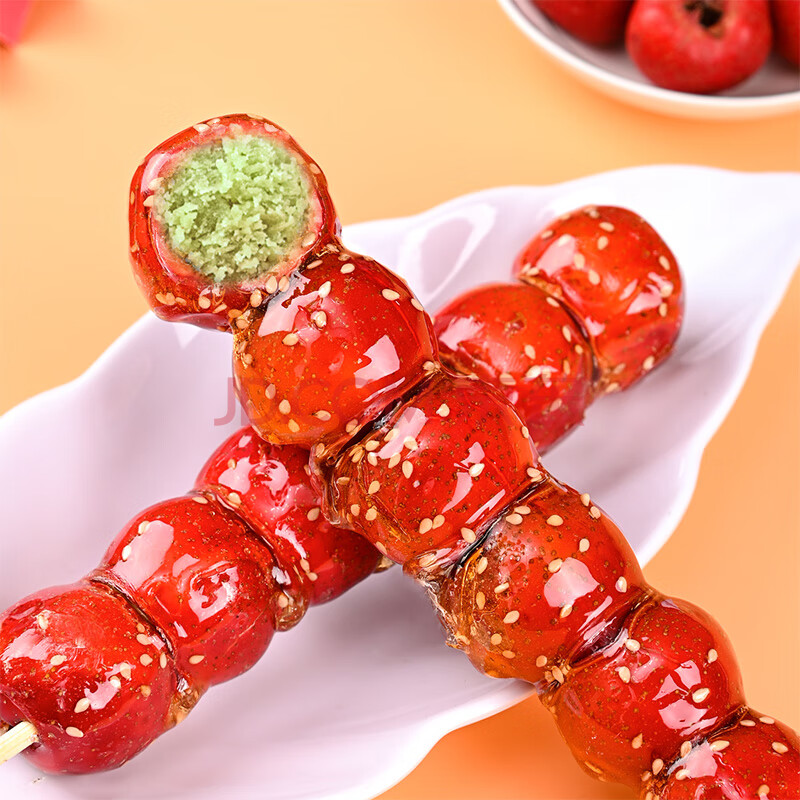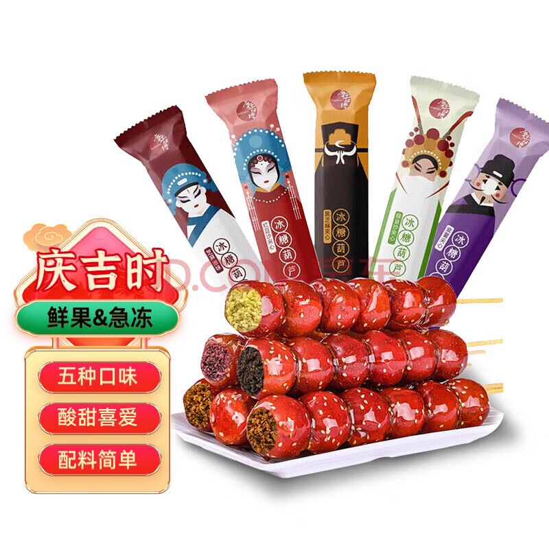 商品名称:庆吉时 冰糖葫芦350g 山楂 儿童小零食 去核夹心 水果 冷冻 5串混合精装