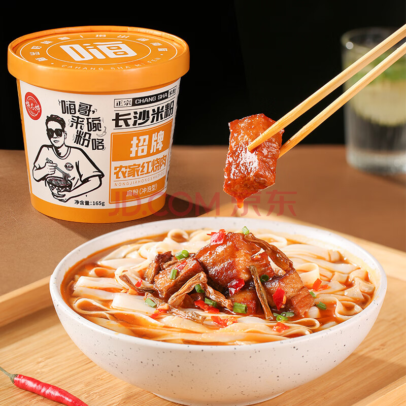 > 嗨名捞长沙米粉混6桶红烧牛肉粉农家红烧肉老长沙猪油拌粉速食早餐原汤
