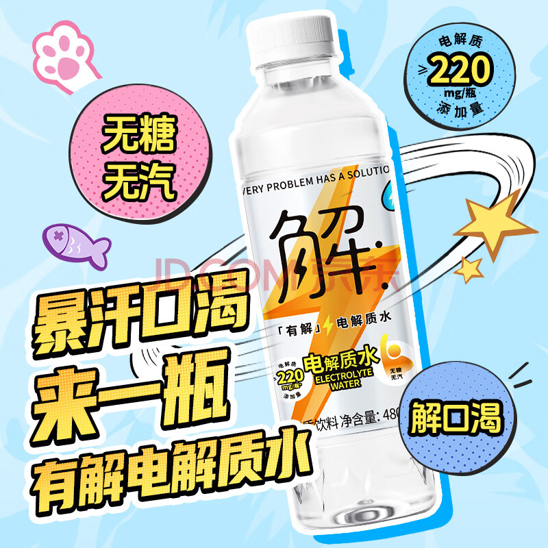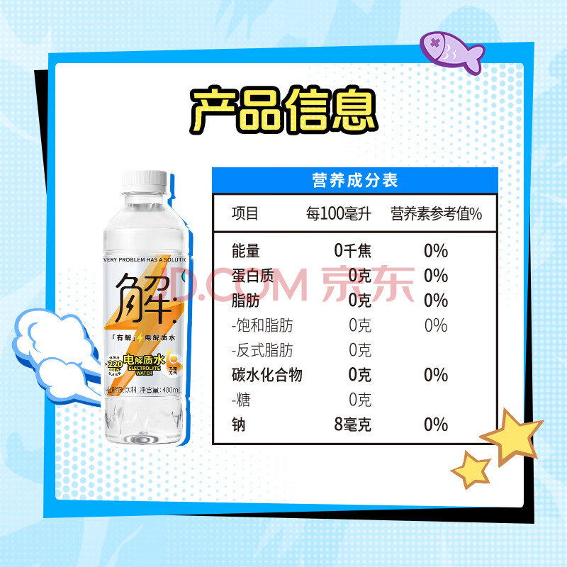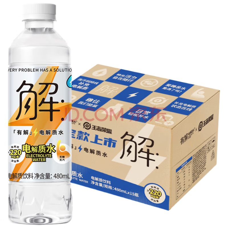 商品名称:屈臣氏(Watsons)有解电解质水无糖运动功能饮料补充身体水分480mL*15瓶整箱