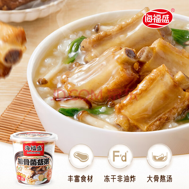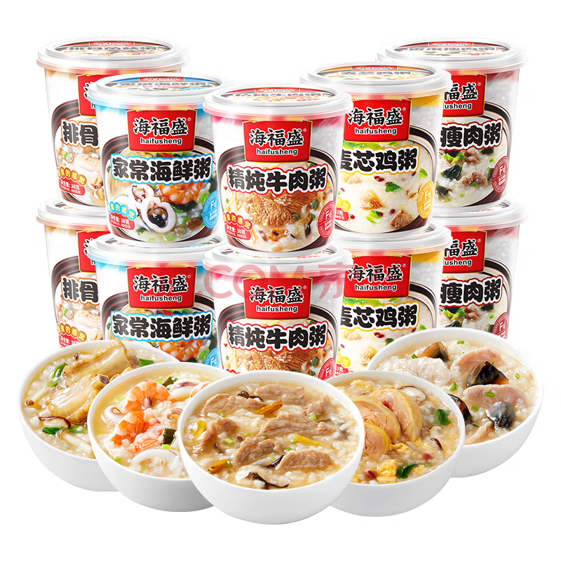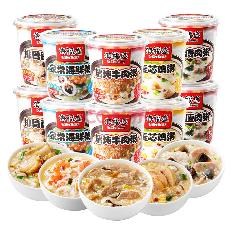 > 海福盛方便速食粥早餐宵夜懒人食品冻干八宝粥经典粥5味10杯368g