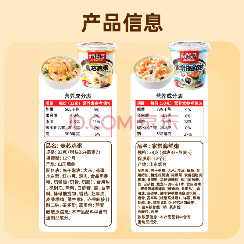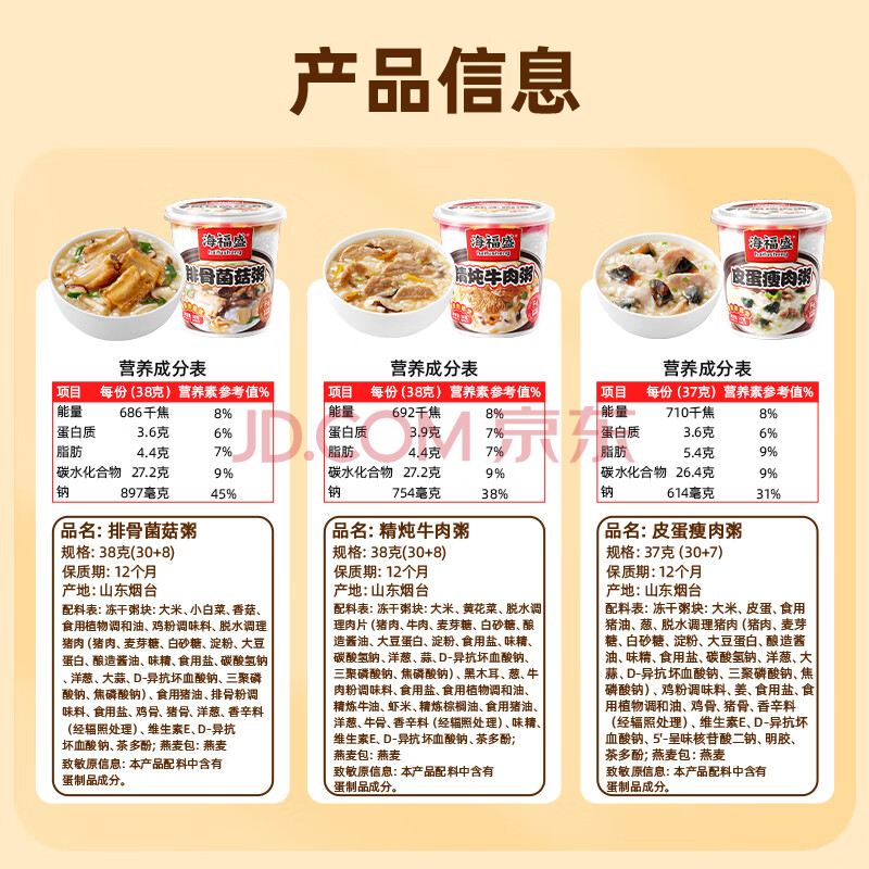 商品名称:海福盛方便速食粥早餐宵夜懒人食品冻干八宝粥经典粥5味10杯368g