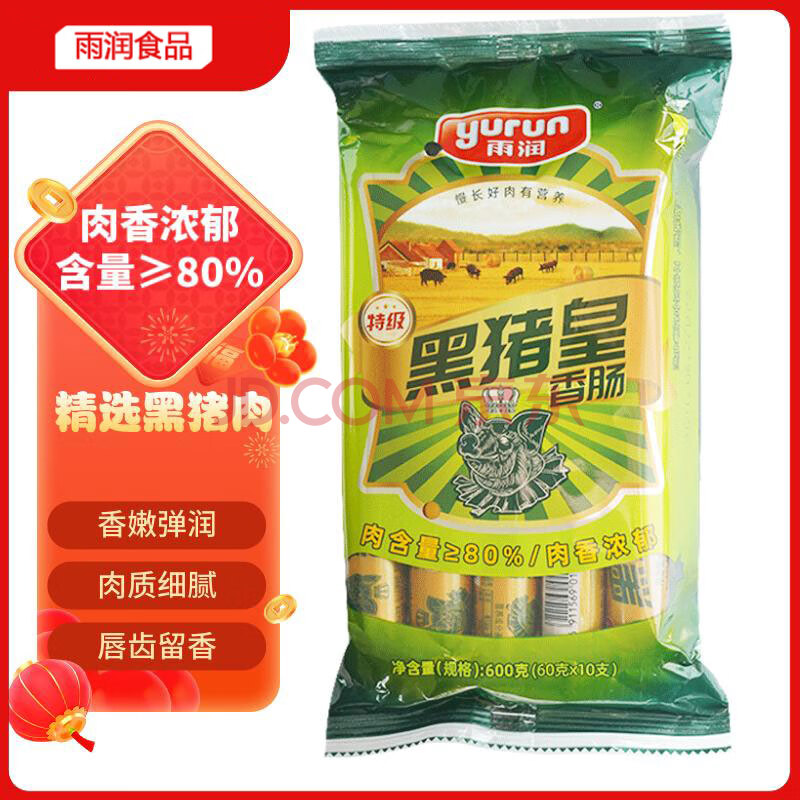 商品名称:雨润 王中王 黑猪皇特级香肠火腿肠60g×10支/袋 含肉量≥80%