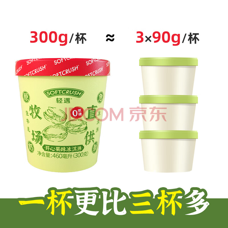 > 轻遇(SoftCrush)零蔗糖生牛乳冰淇淋网红盒装甜品家庭雪糕冷饮开心果口味300g