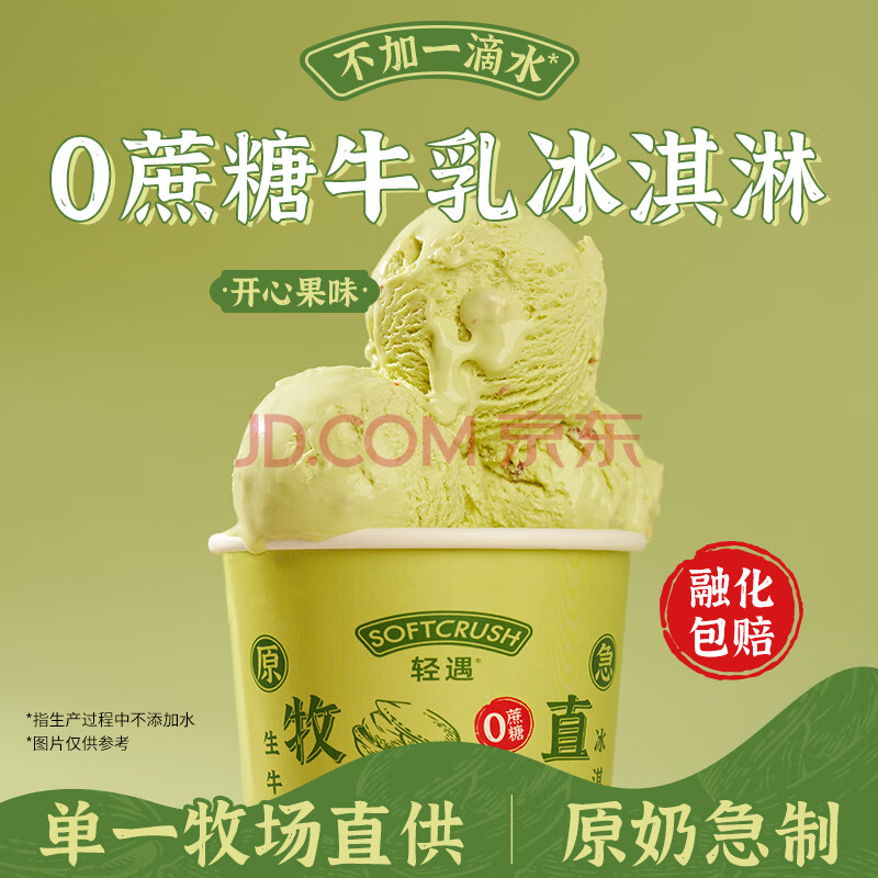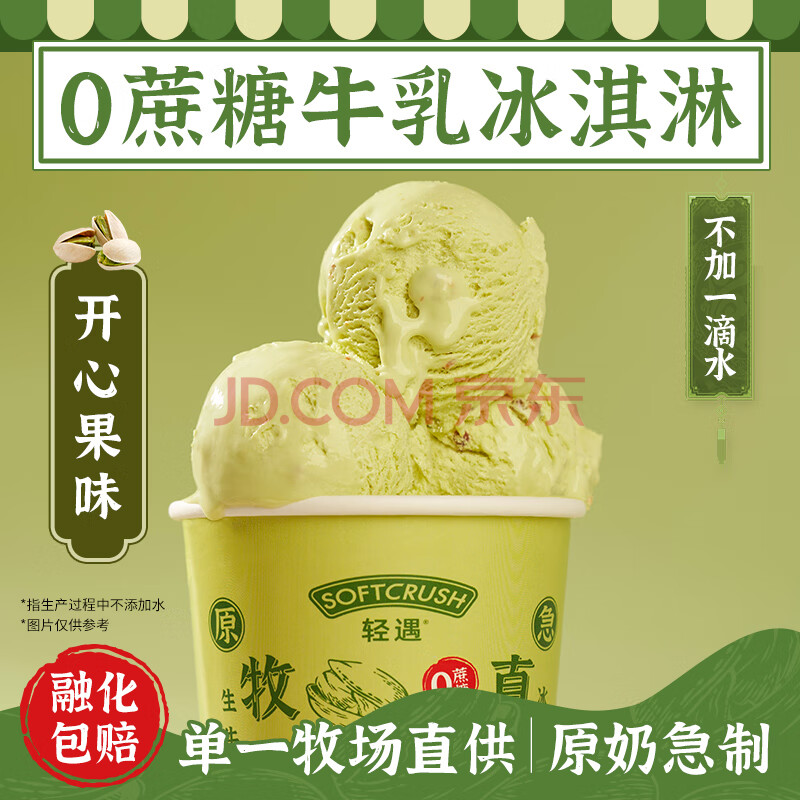 轻遇(SoftCrush)零蔗糖生牛乳冰淇淋网红盒装甜品家庭雪糕冷饮开心果口味300g