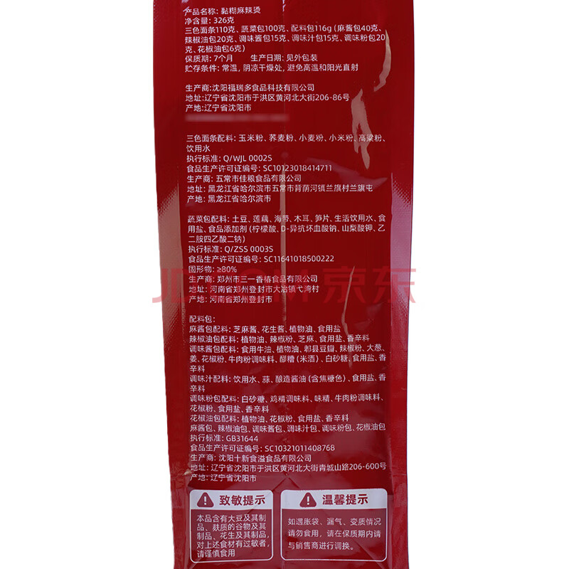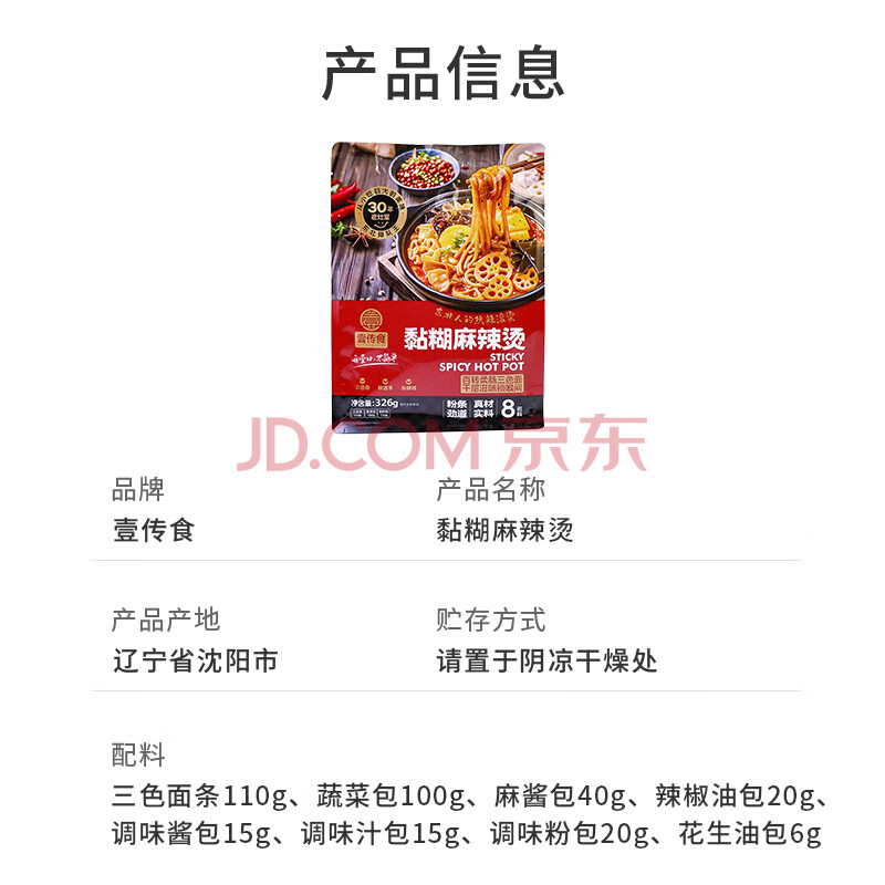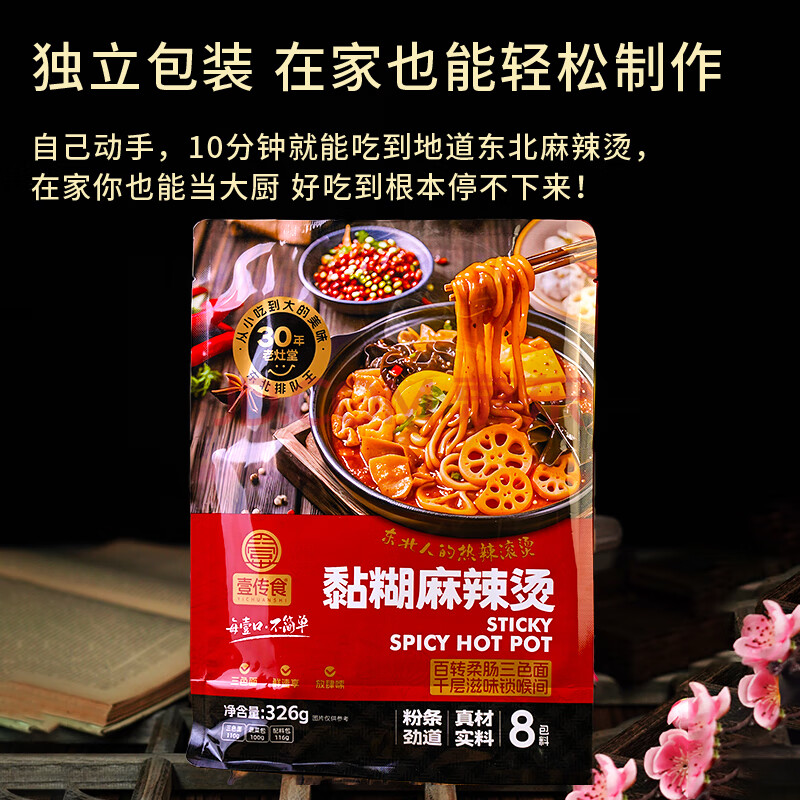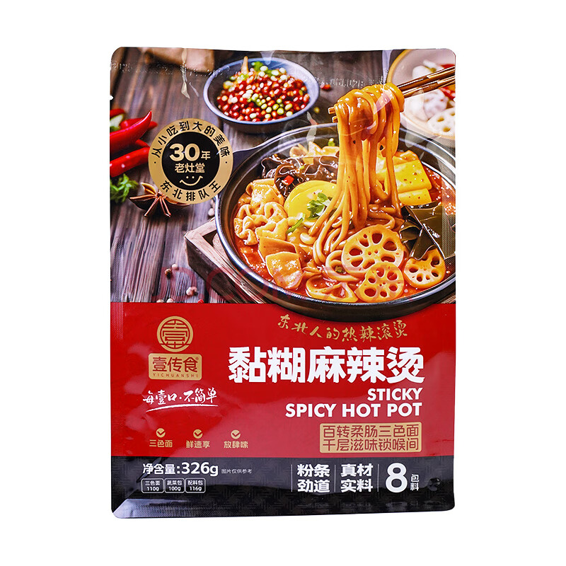 商品名称:壹传食东北老式麻辣烫326g 含酱料 麻辣拌香锅水煮即食晚餐方便速食夜宵