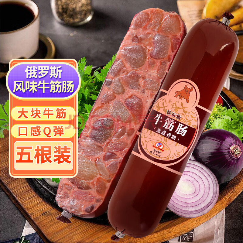 > 赞布斯 俄罗斯风味牛筋肠350g*5根装香肠大火腿肠即食下酒菜食品