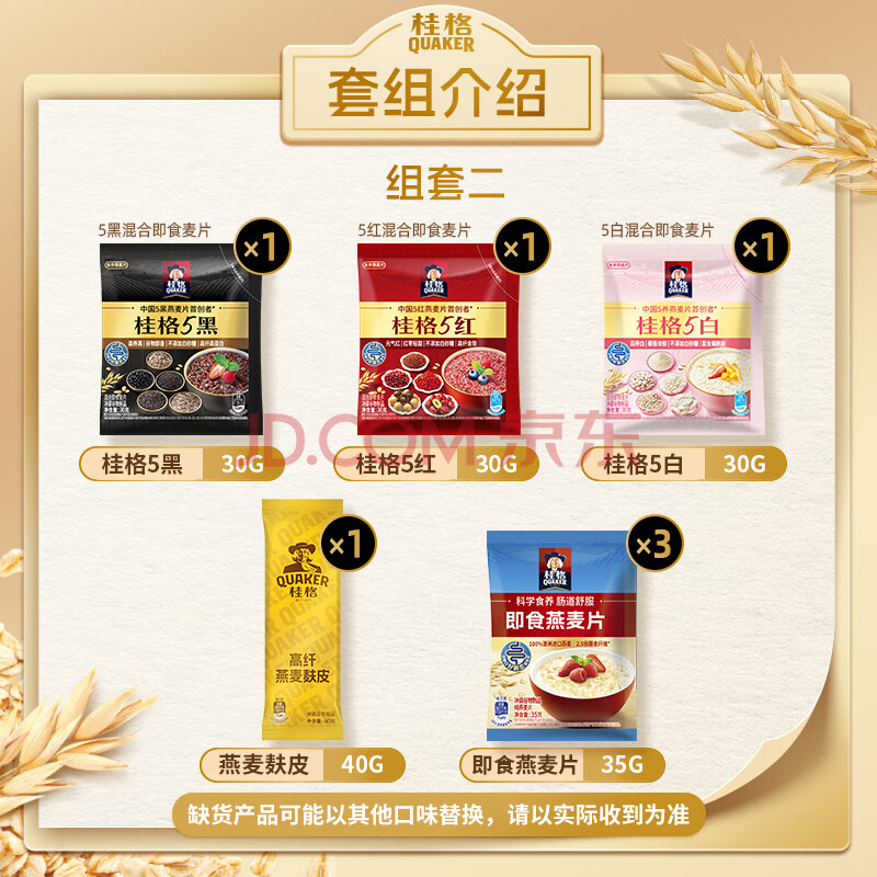桂格燕麦片组合1304克(包含40小袋) 营养早餐 独立小包 膳食纤维