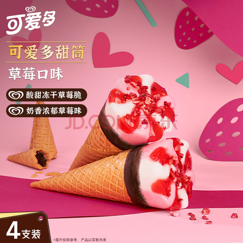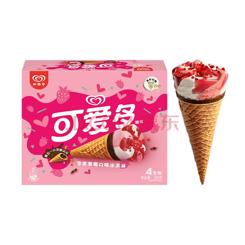 商品名称:可爱多【曾舜晞推荐】甜筒草莓口味冰淇淋 雪糕 冰激凌 甜筒 67g*4支
