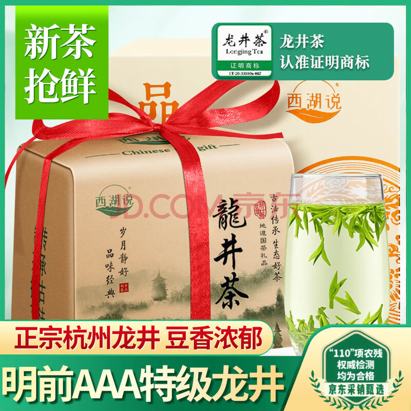 西湖说杭州龙井茶豆香特级250g明前绿茶纸包装新茶春茶嫩芽年货节送礼