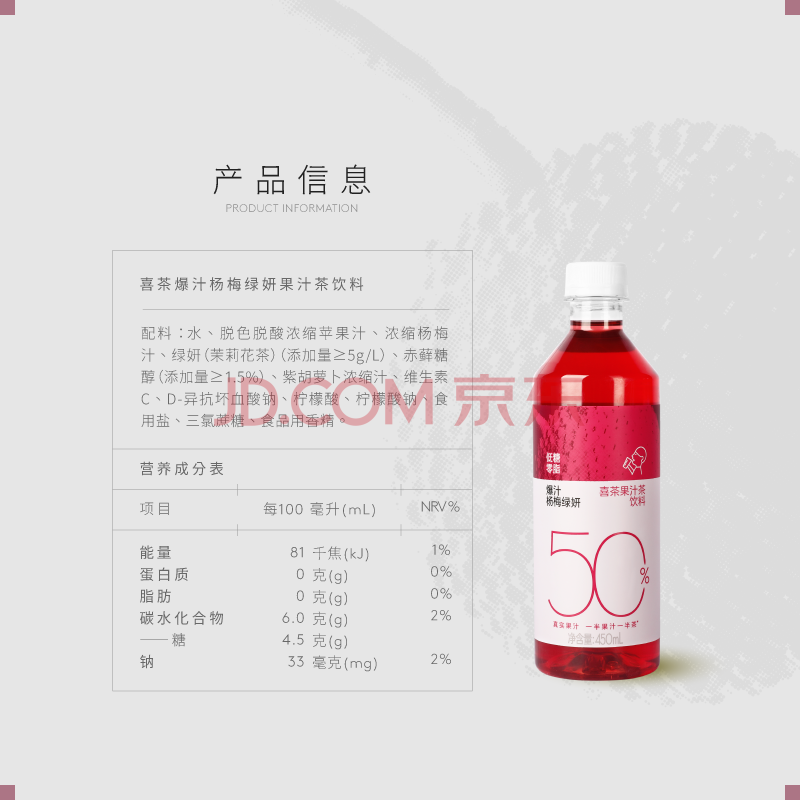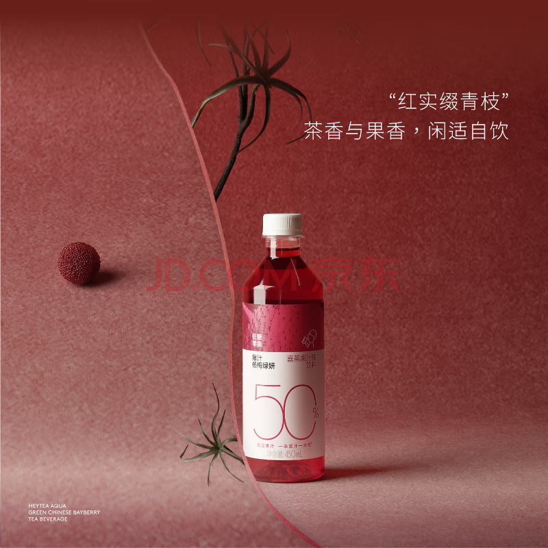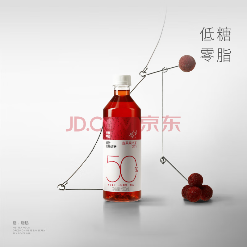 商品名称:喜茶50%果汁茶爆汁杨梅绿妍450ml*15瓶 低糖0脂 果汁茶饮料整箱