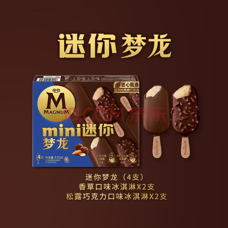 商品名称:梦龙【王嘉尔推荐】和路雪迷你梦龙香草+松露口味冰淇淋 42g*2+43g*2