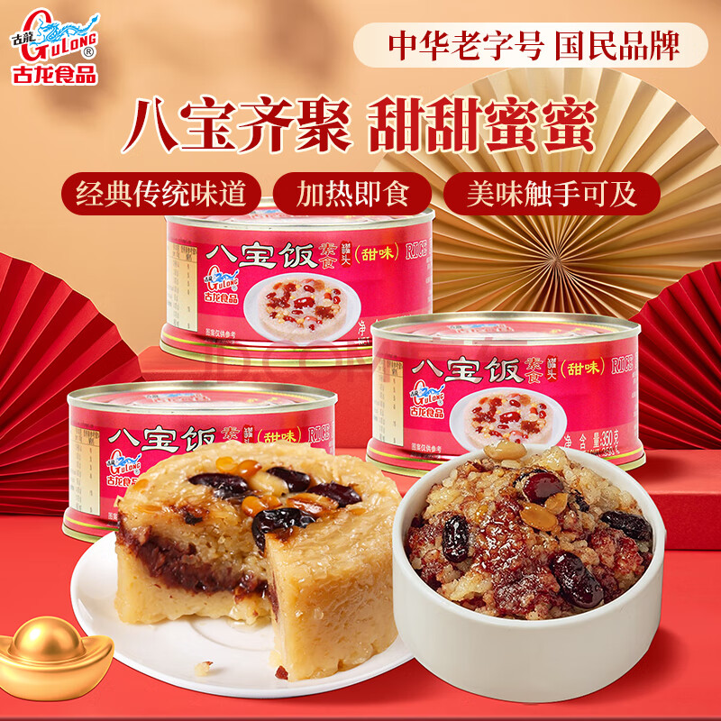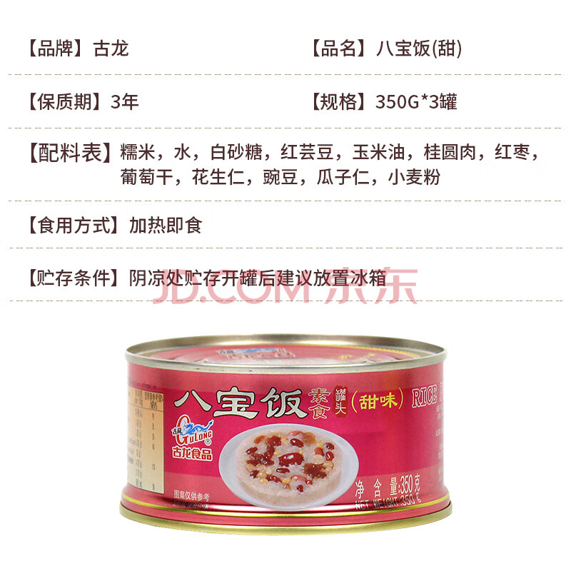 商品名称:古龙 甜味八宝饭糯米饭罐头350g*3罐即食年夜方便米饭速食中华老字号