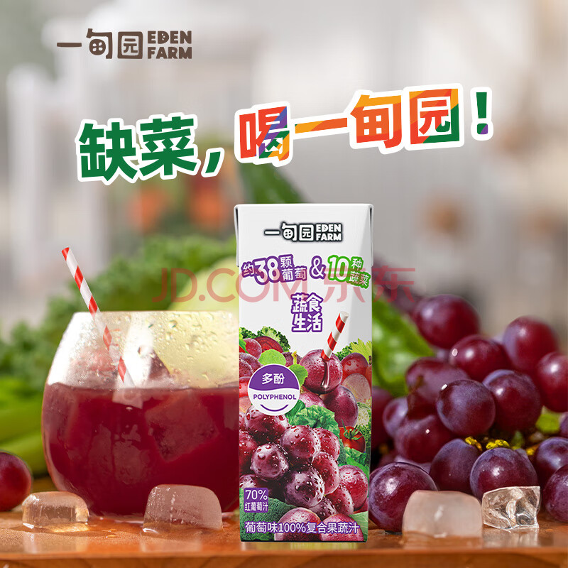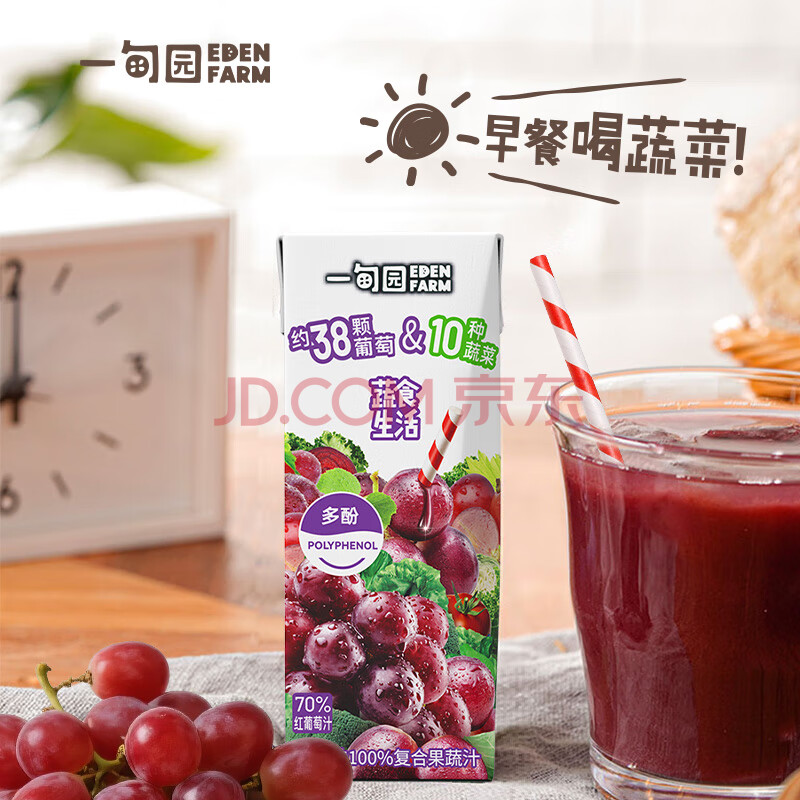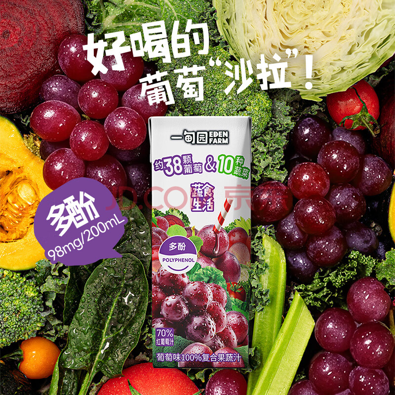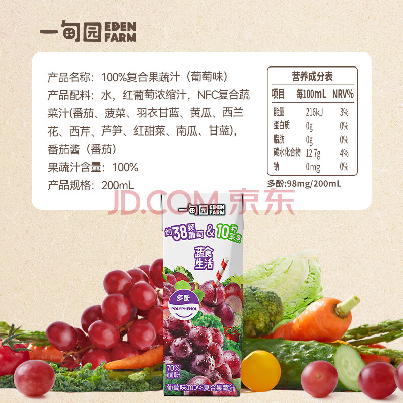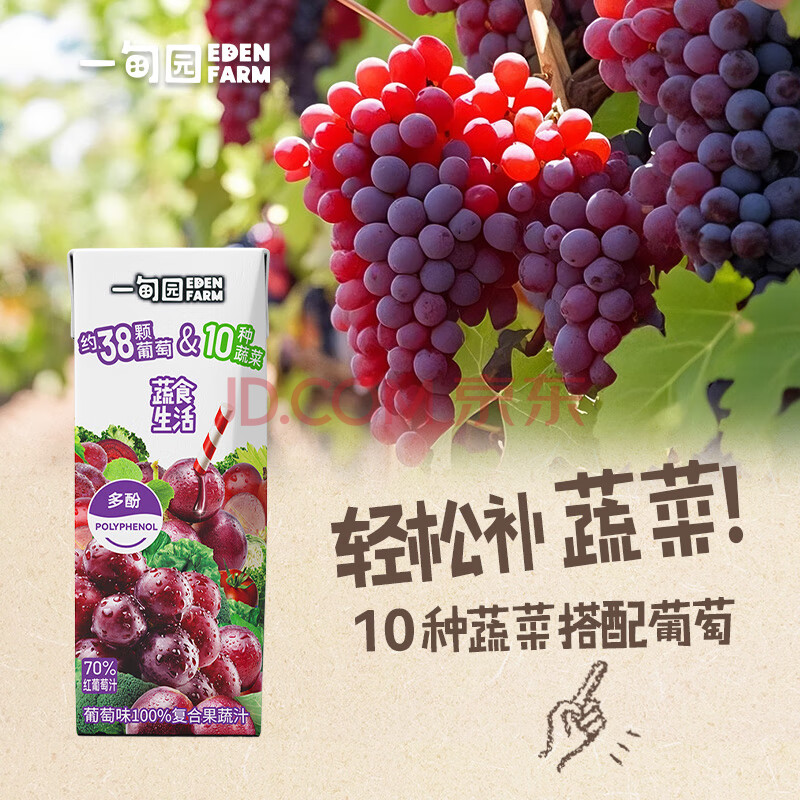 商品名称:一甸园100%葡萄味复合果蔬汁蔬果饮料200ml*10 礼盒装【黑五】
