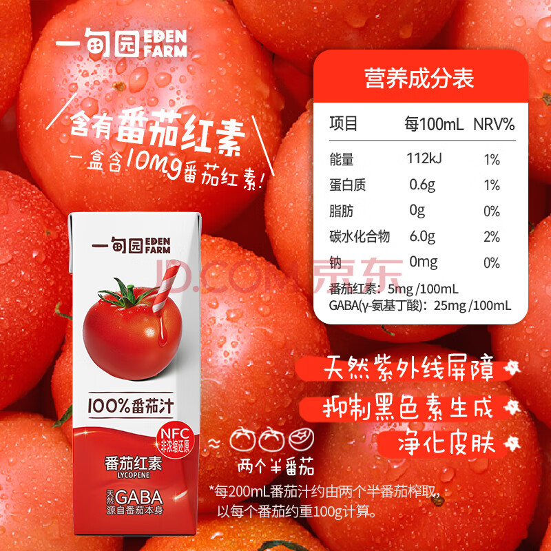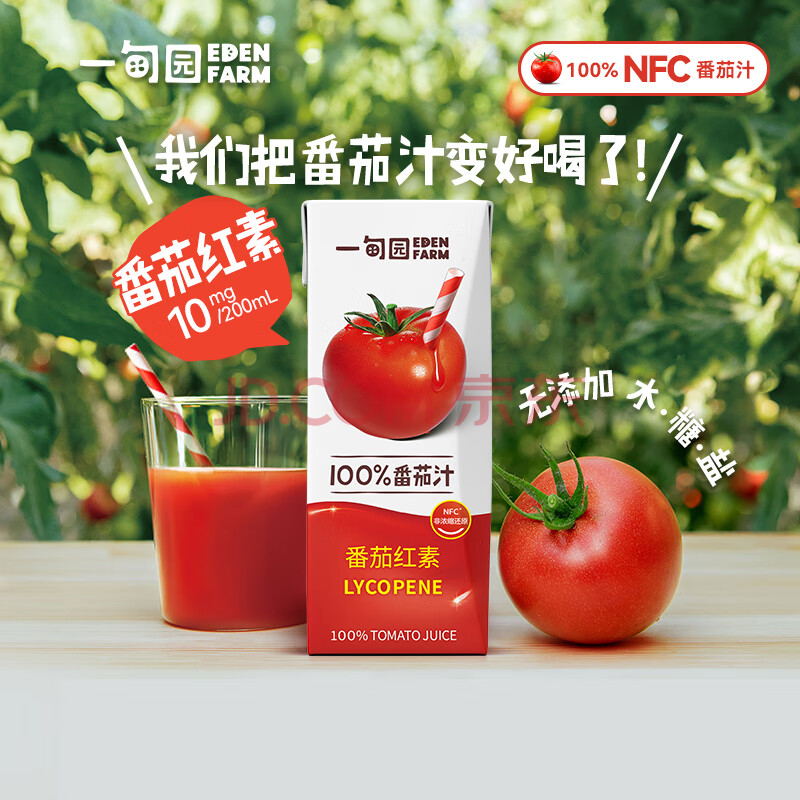 商品名称:一甸园100%NFC番茄汁果蔬汁饮料200ml*10礼盒装 西红柿汁蔬菜果汁代餐