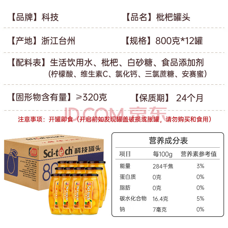 商品名称:科技枇杷罐头800g*12罐 水果罐头糖水饮料水果捞零食送礼礼品节日礼盒