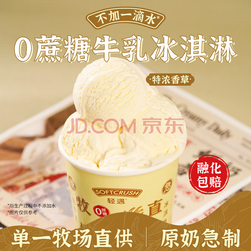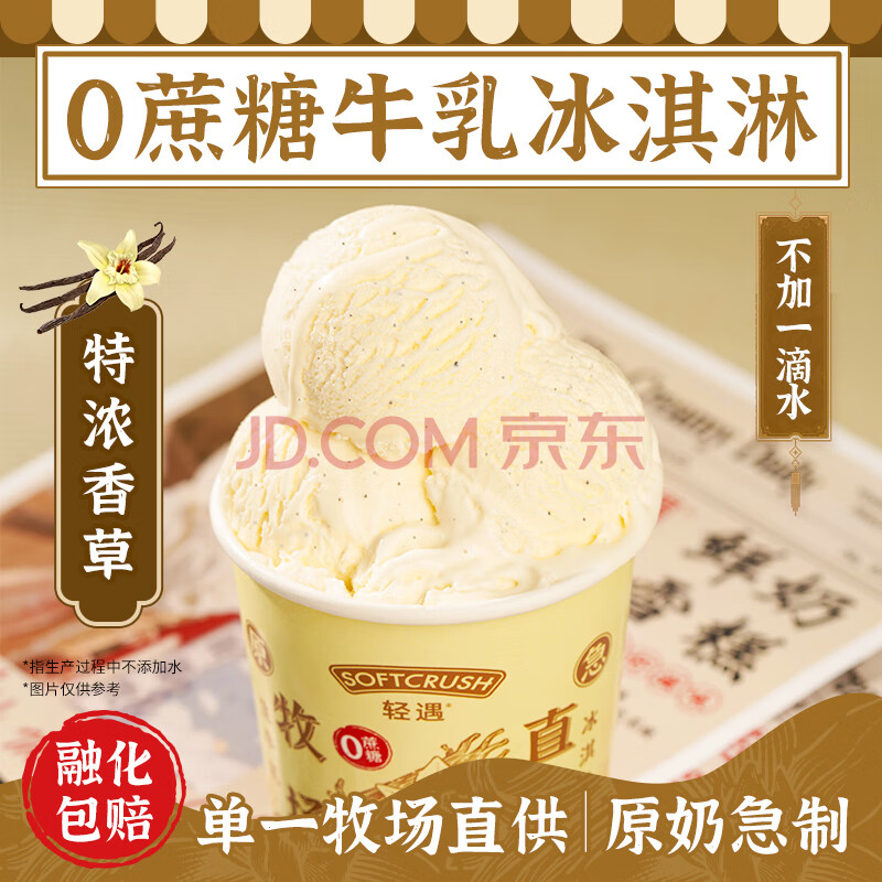 商品名称:轻遇(SoftCrush)零蔗糖生牛乳冰淇淋 香草口味460ml 网红盒装甜品雪糕冷饮