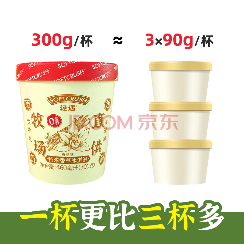 > 轻遇(SoftCrush)零蔗糖生牛乳冰淇淋 香草口味460ml 网红盒装甜品雪糕冷饮