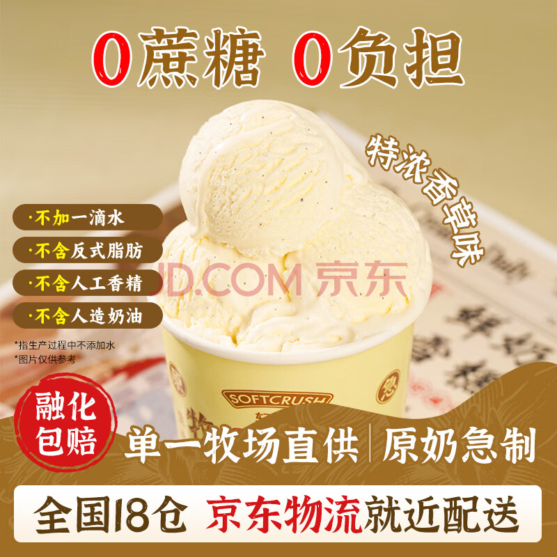 轻遇(SoftCrush)零蔗糖生牛乳冰淇淋 香草口味460ml 网红盒装甜品雪糕冷饮