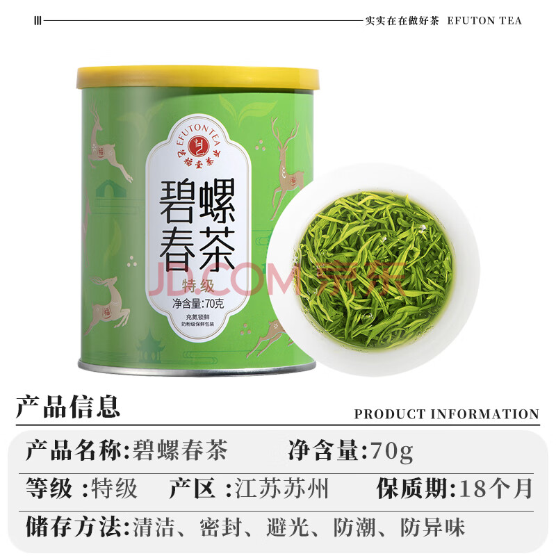 商品名称:艺福堂绿茶 江苏原产碧螺春特级精选70g 明前2025新茶罐装茶叶自饮