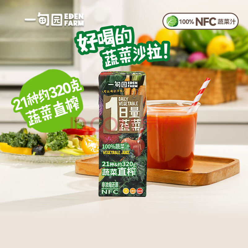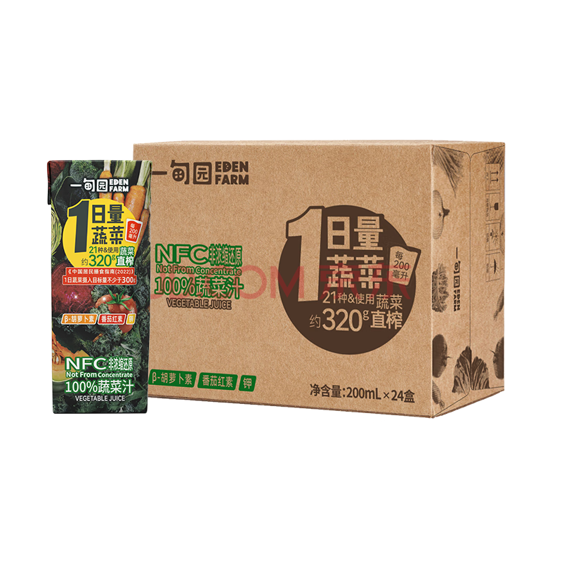 商品名称:一甸园一日量蔬菜汁100%NFC果蔬汁饮料200ml*24盒整箱果汁液断代餐