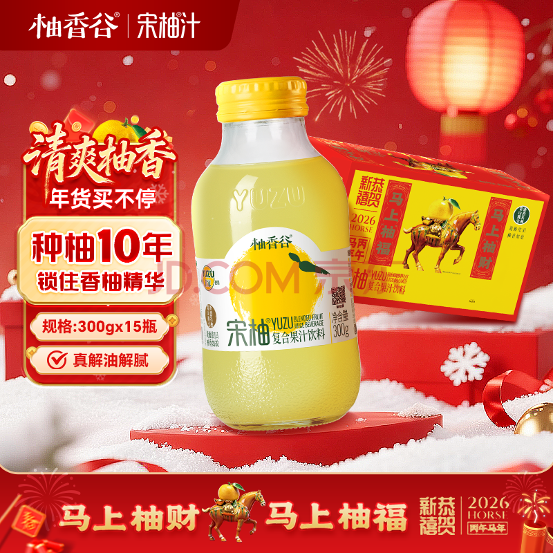 商品名称:柚香谷宋柚汁双柚汁复合果汁饮料300g*15瓶鲜果萃取【马年 年货礼盒装】