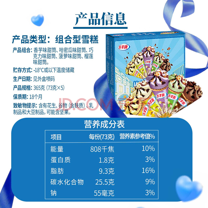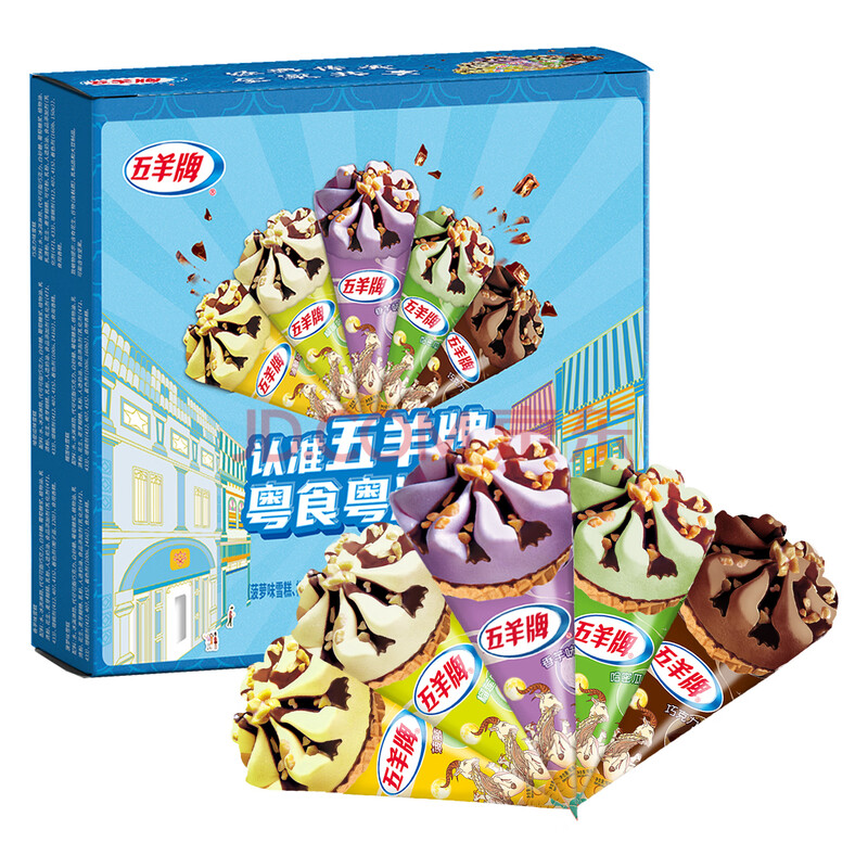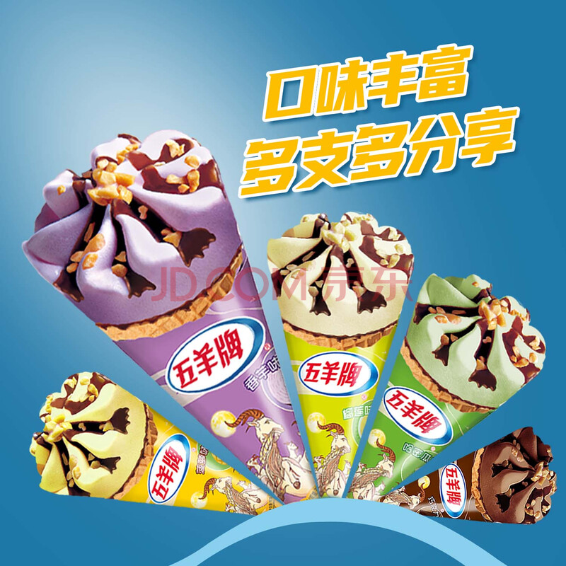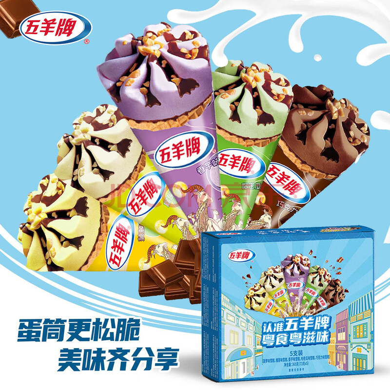 商品名称:五羊牌混合口味脆皮甜筒冰淇淋家庭装73g*5支 雪糕脆筒冰激凌冷饮批发