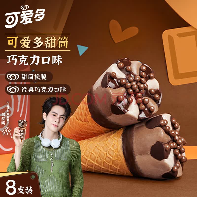 商品名称:可爱多【曾舜晞推荐】甜筒巧克力口味冰淇淋 雪糕 冰激凌 甜筒 67g*4支