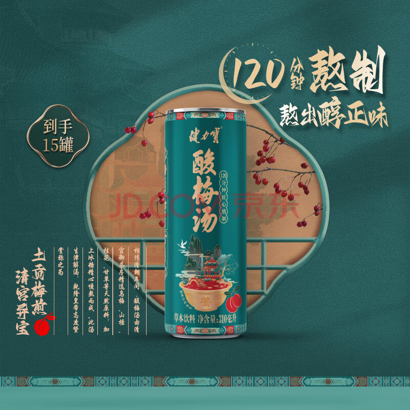 商品名称:健力宝酸梅汤310mL*15罐0添加草本饮料陈皮桂花山楂乌梅汁火锅烧烤伴侣