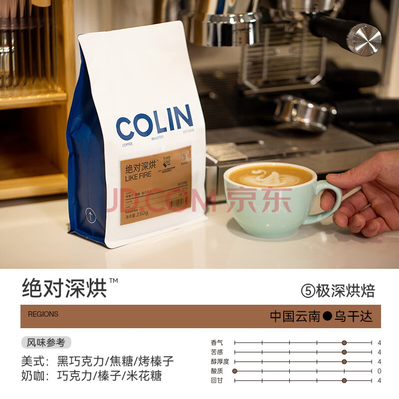 商品名称:柯林咖啡意式咖啡粉 绝对深烘™ 特浓炭烧拼配深度浓缩拿铁无酸咖啡250g