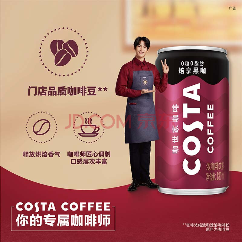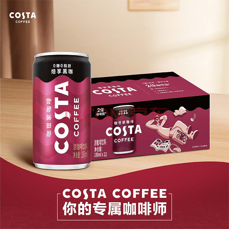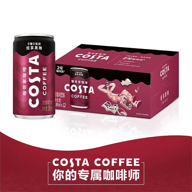 商品名称:可口可乐(Coca-Cola)COSTA 咖世家焙享黑咖浓咖啡饮料 180ml*12罐